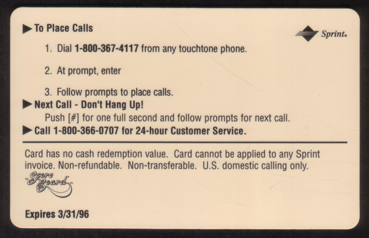 Since we have the world's largest inventory of USA phonecards for collectors, you will not necessarily receive the identical serial/batch/PIN number that we have scanned/pictured.