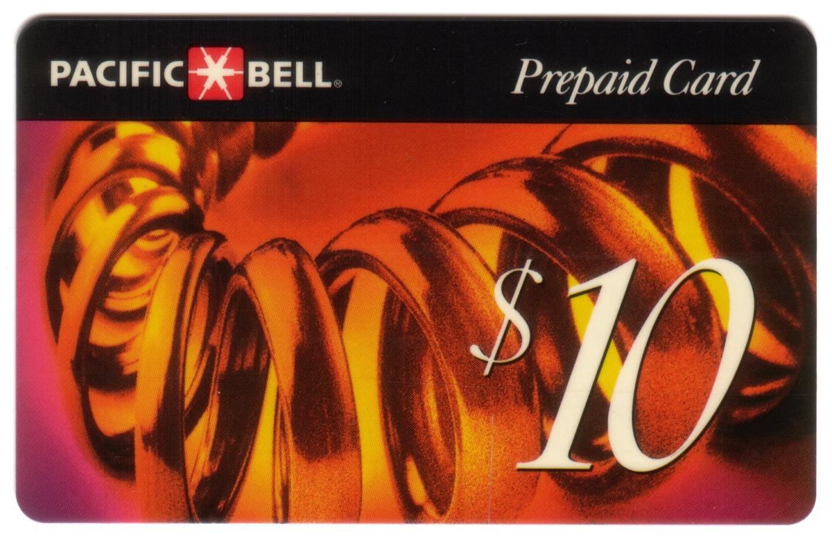 Overall, this phone card from the Utility Series demonstrates a classic telecommunications motif with professional branding from Pacific Bell and WorldCom. It holds a $10 value and visually celebrates the everyday element of phone cords as an essential part of telephones.