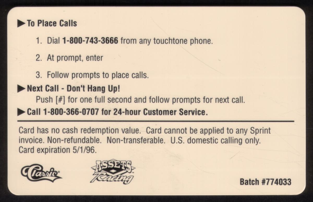 Since we have the world's largest inventory of USA phonecards for collectors, you will not necessarily receive the identical serial/batch/PIN number that we have scanned/pictured.
