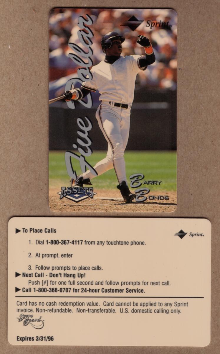 This specimen phone card was issued on March 31, 1996, by The Score Board Inc., as part of the collectible sports series focusing on baseball and MLB players. The card combines collectible value with a clear tribute to Barry Bonds' baseball career during this period.