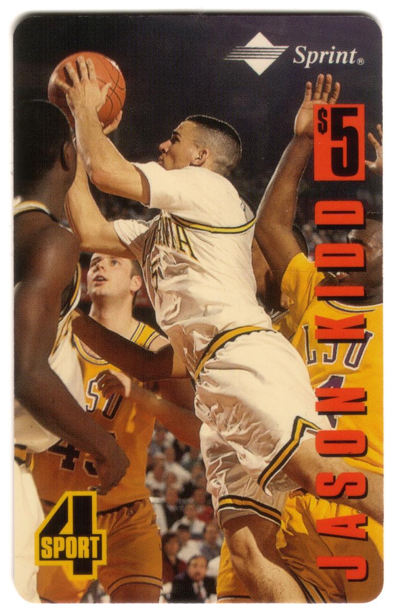 This set is categorized under the National Basketball Association and includes graphics related to basketballs and basketball players. It specifically celebrates Jason Kidd, an influential figure in professional basketball history. The cards are intended for collectors of NBA memorabilia and basketball-related collectible chip cards.