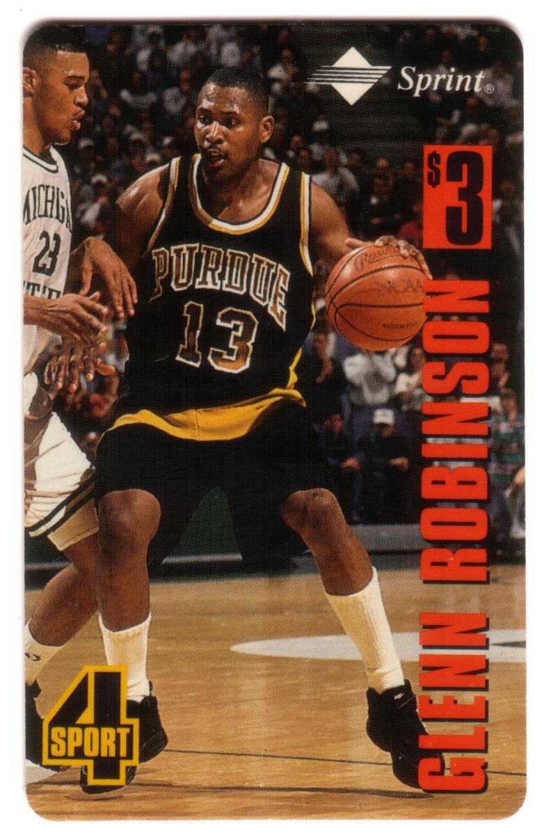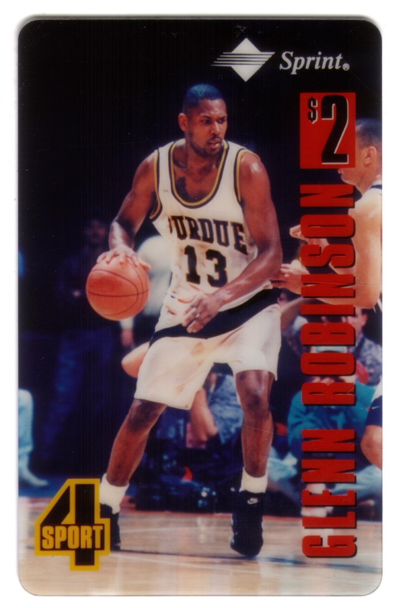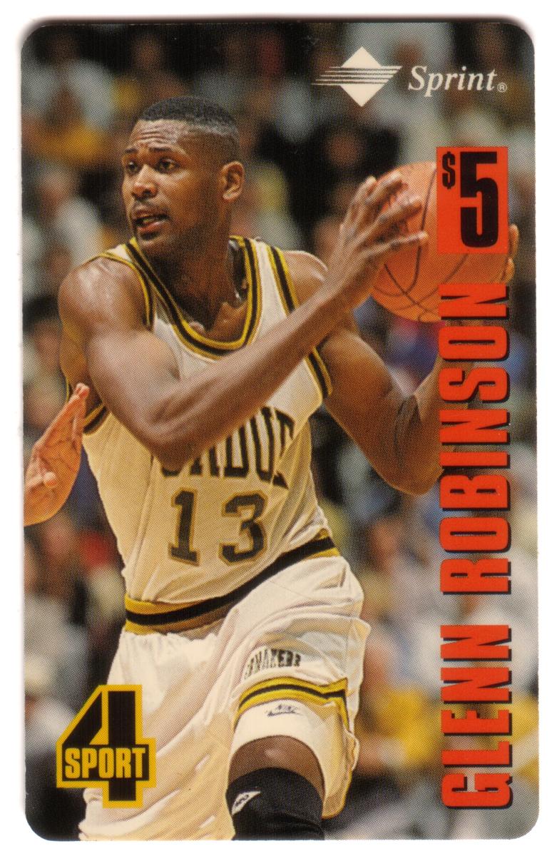 These specimens are part of a set valued between $1 and $5, making them accessible collector’s items. The cards are presented against a smooth, clean background that enhances the focus on Glenn Robinson and the basketball motifs, making this set a notable piece for fans and collectors of NBA memorabilia.