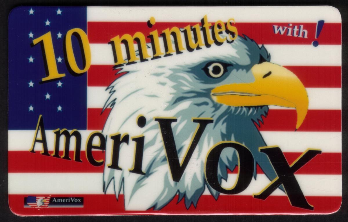 This card clearly celebrates Americana and United States national pride, using the iconic imagery of the American flag and bald eagle alongside the brand “AmeriVox.”