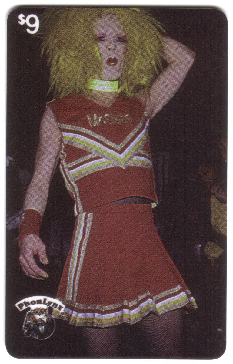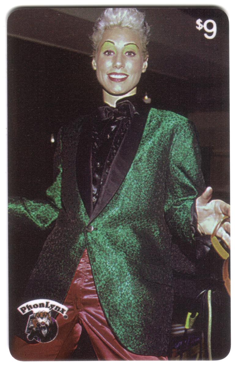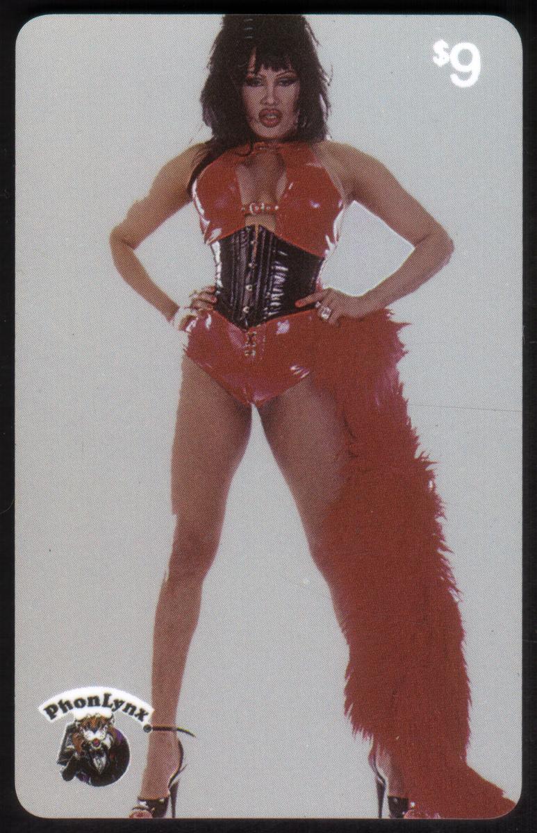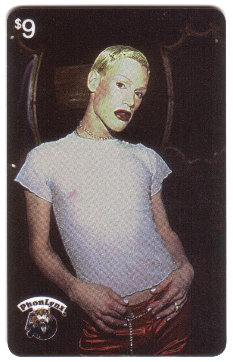 This set of collectible phone cards features a series titled "Drag Queen Series 'A Real Drag'" with photographs by Adolfo Gallela. The cards portray men in drag, depicting drag queens, transgender, and female impersonators in various elaborate costumes and makeup. The images show a range of expressive and dramatic styles, from glamorous and elegant gown looks to bold, theatrical costumes. Each card has a PhonLynx logo featuring a black panther, and monetary values ranging from $9 to $12 are visible on the cards.