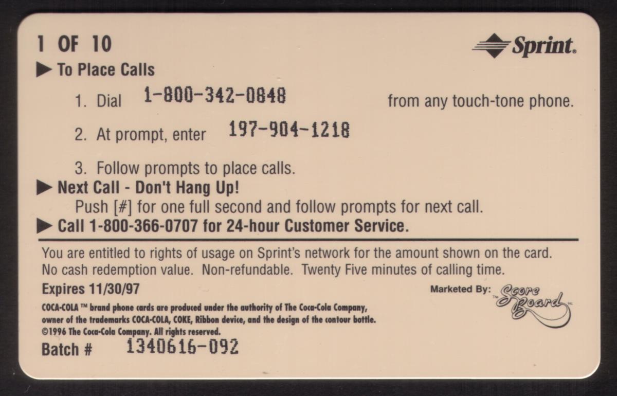 Since we have the world's largest inventory of USA phonecards for collectors, you will not necessarily receive the identical serial/batch/PIN number that we have scanned/pictured.