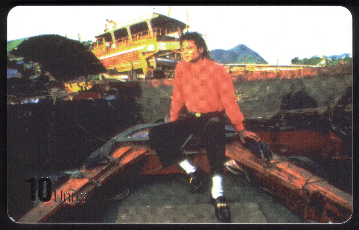This collection features a set of 10 different Michael Jackson collectible phone cards. Each card showcases iconic images of Michael Jackson throughout various stages of his career, highlighting his status as the "King of Pop." Several cards include the denomination of 10 Units or a $10 value prominently displayed. The imagery includes Michael Jackson in elaborate costumes and memorable poses, emphasizing his influence in pop music and entertainment.