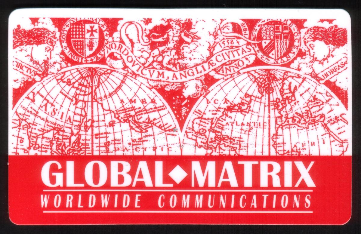 Overall, this Global Matrix Card serves as a collectible item that reflects historical cartographic artwork fused with modern communication branding. The red and white palette accentuates the map and text, resulting in a visually striking presentation that appeals to collectors interested in art, history, and international communication themes.
