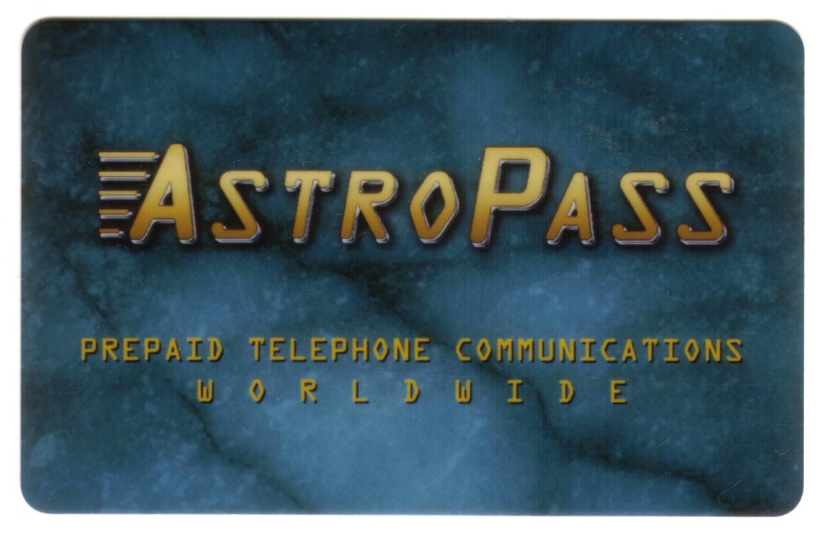 No numerical codes or helmet numbers are present on this card. The design focuses on the identification of the AstroPass utility by WT Communication Service, useful for collectors interested in telecommunication cards from this provider. This collectible card stands out due to its unique color combination and bilingual presentation in both English and Japanese.