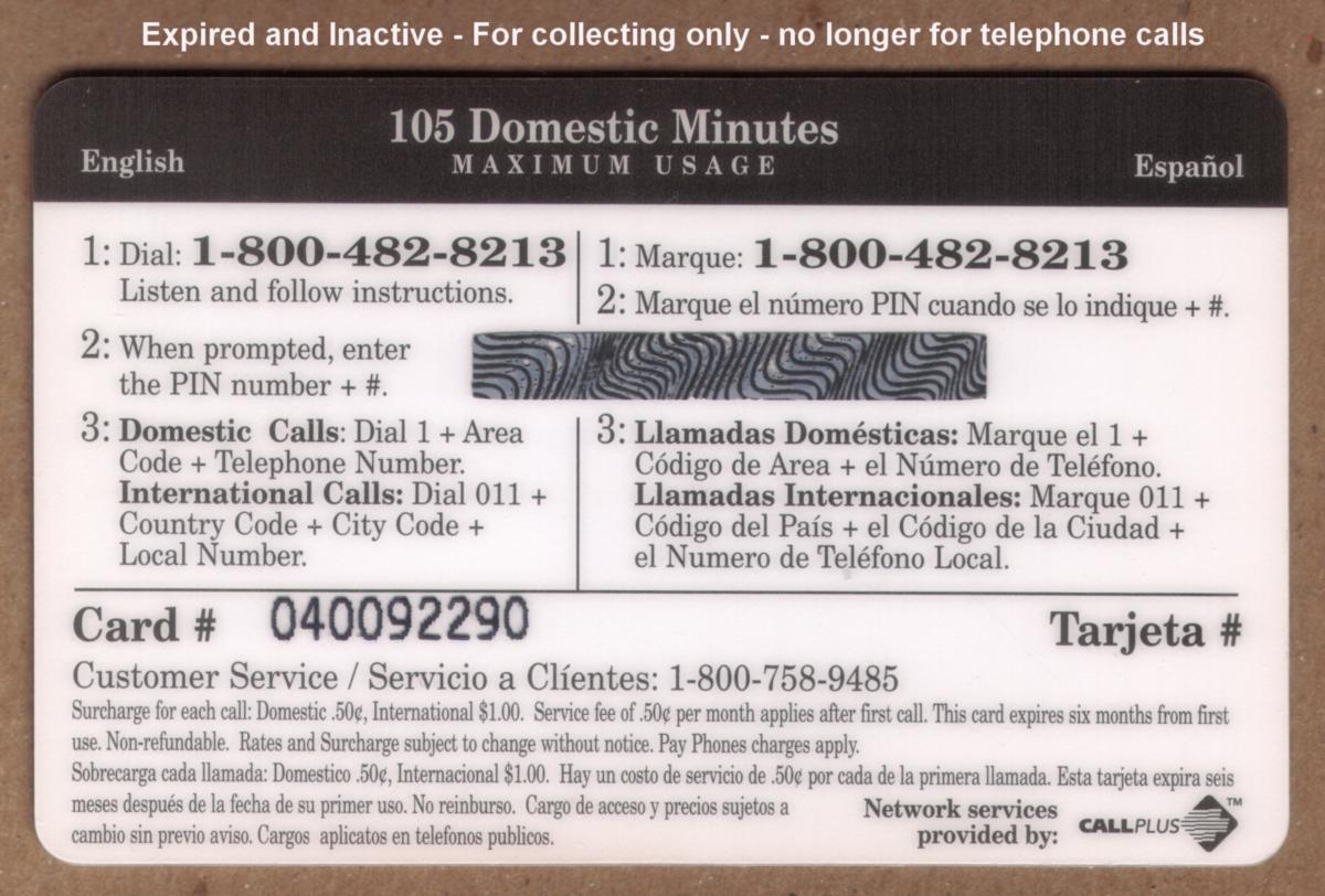Since we have the world's largest inventory of USA phonecards for collectors, you will not necessarily receive the identical serial/batch/PIN number that we have scanned/pictured.