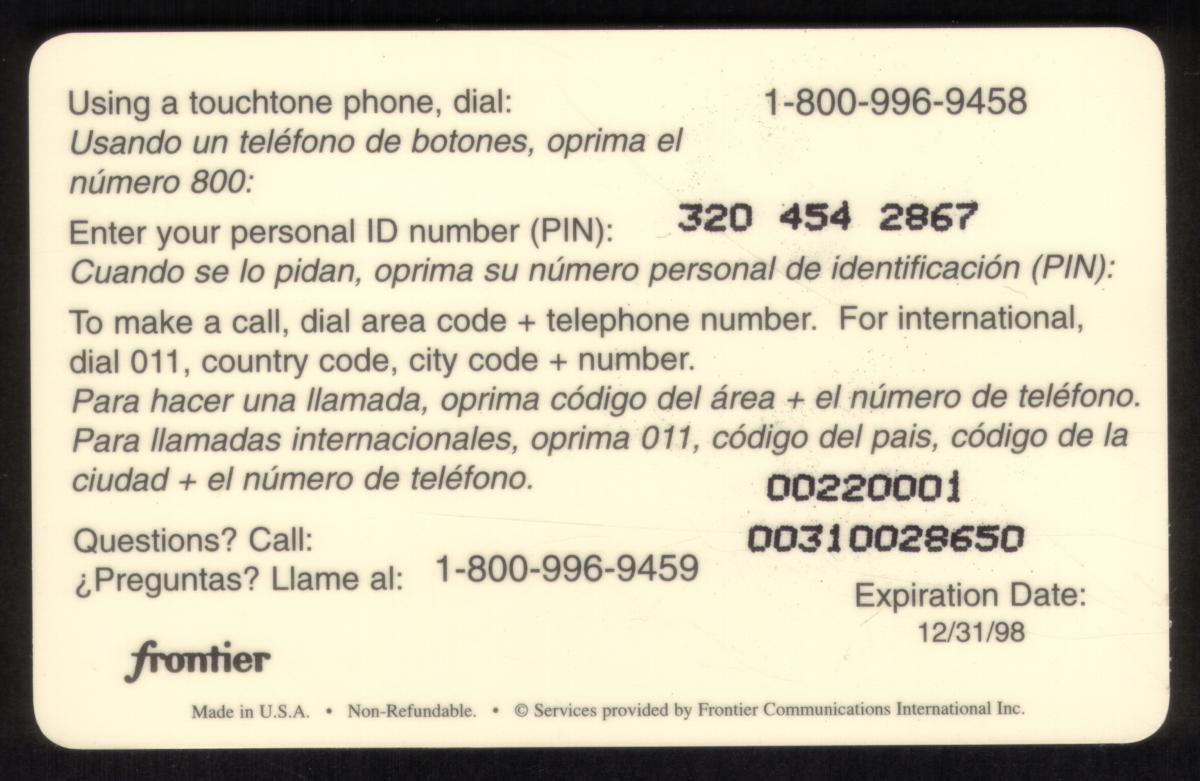 Since we have the world's largest inventory of USA phonecards for collectors, you will not necessarily receive the identical serial/batch/PIN number that we have scanned/pictured.