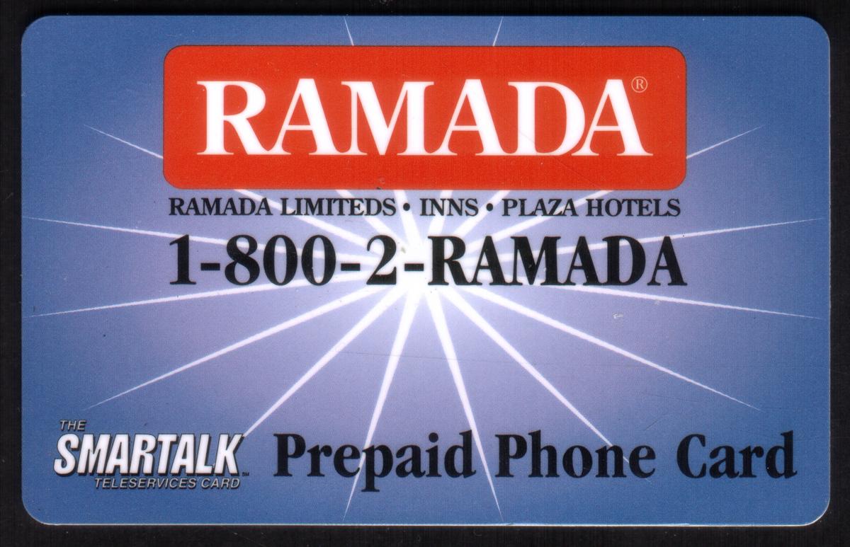 This card is a collectible phone card issued in association with SmarTalk TeleServices and Ramada Inn. The card’s front side clearly conveys the corporate branding with sharp, legible text and logos, making it a promotional item connected to hotels and lodging.