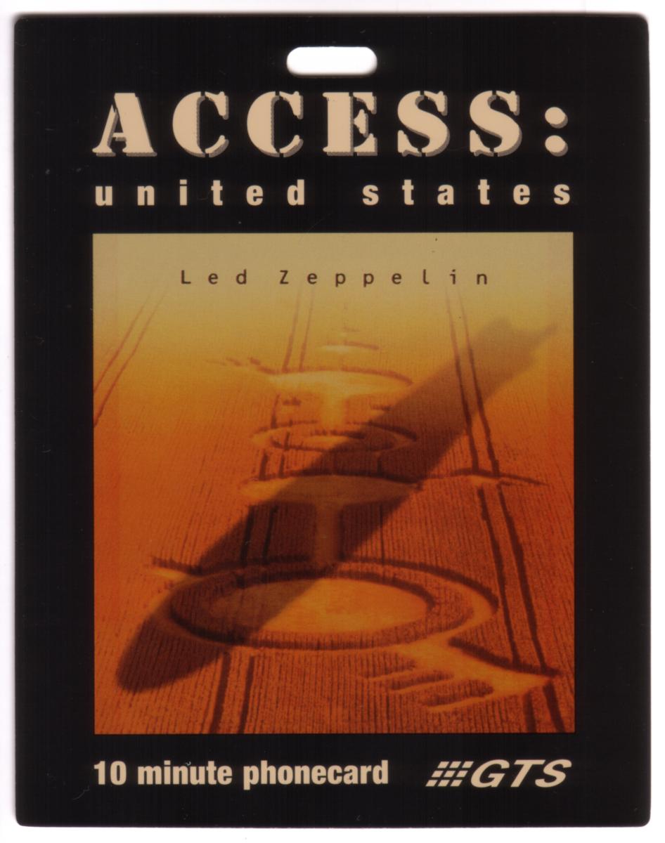 This card is part of the Access United States series and is related to music and entertainment, particularly focusing on the legendary band Led Zeppelin. It is a collectible phone card with a music album cover theme tied to the 1970s rock and roll era.
