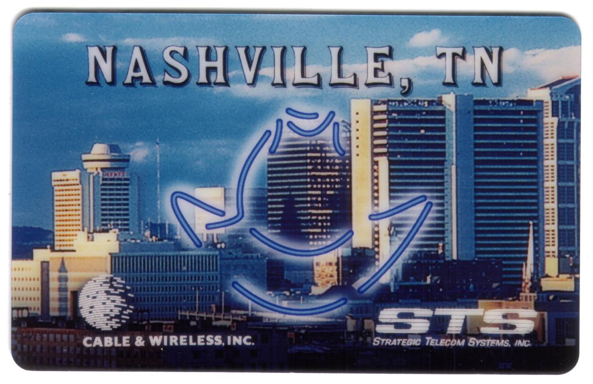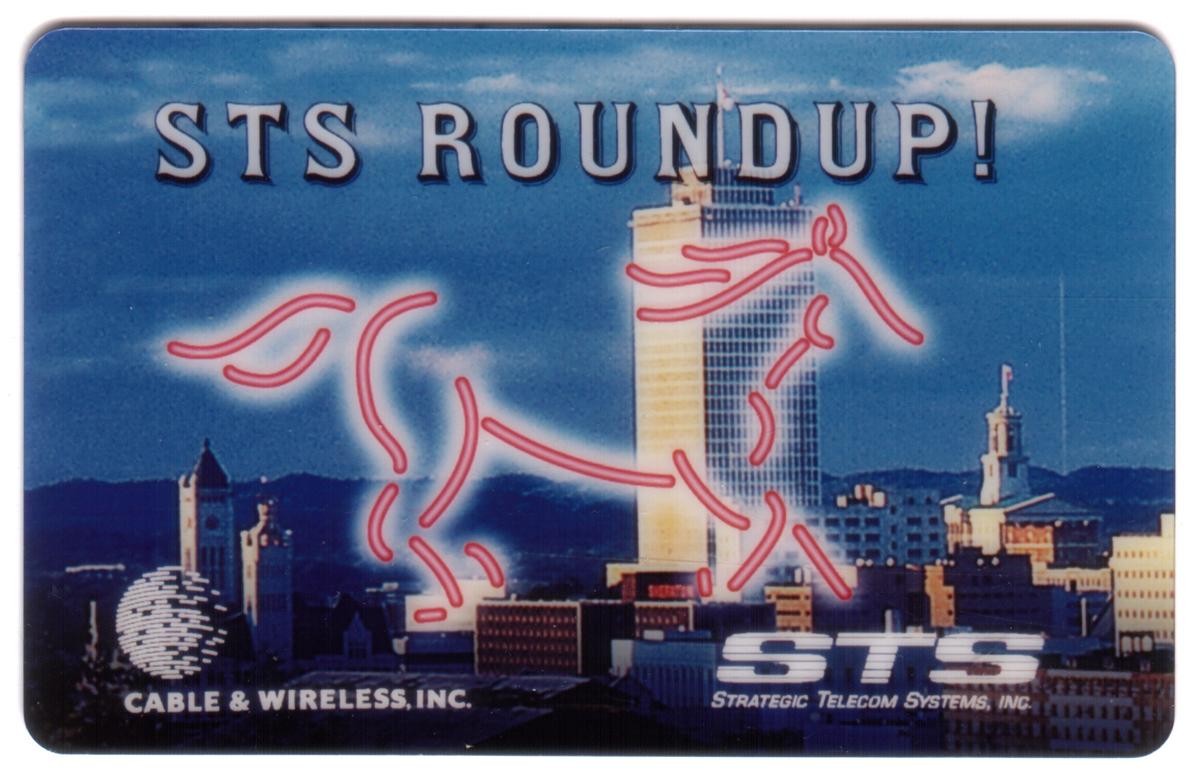 Text on the card references Strategic Telecom Systems, linking it to the telecommunications theme central to the STS Roundup event. Overall, this phone card captures an important cultural and industry-specific moment in Nashville, merging visual elements of the city and its music scene with corporate and conference-related information.