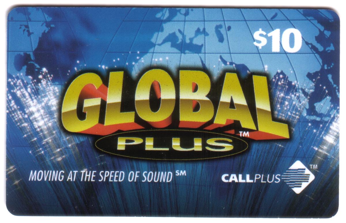 This collectible card is a Global Plus Utility Card issued by CallPlus, displaying a partial globe image combined with fiber optic visual elements. The design features a segmented globe with visible continents and grid lines, complemented by artistic fiber optic light patterns that add a high-tech aesthetic to the card. The CallPlus logo is prominently placed, indicating the card’s association with this telecommunications provider.