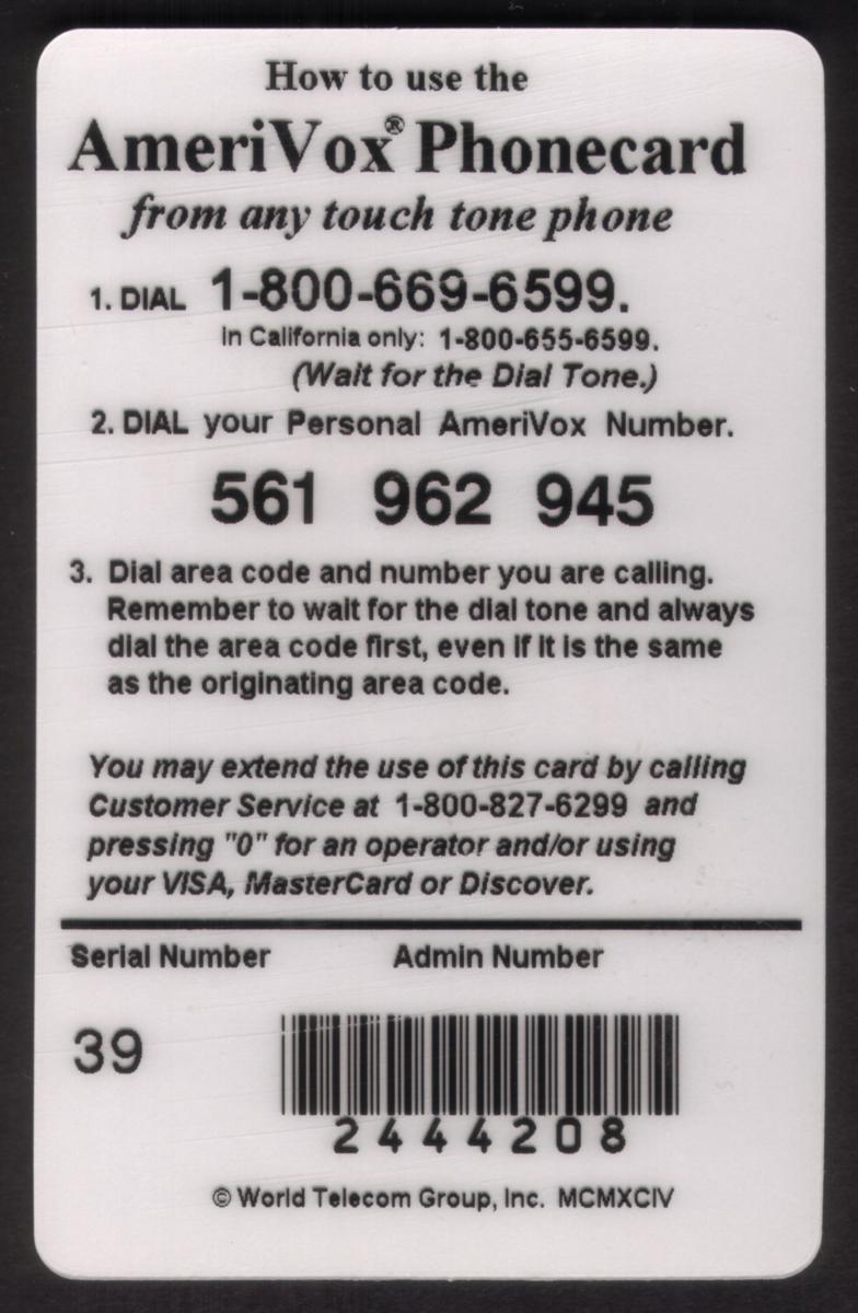 Since we have the world's largest inventory of USA phonecards for collectors, you will not necessarily receive the identical serial/batch/PIN number that we have scanned/pictured.