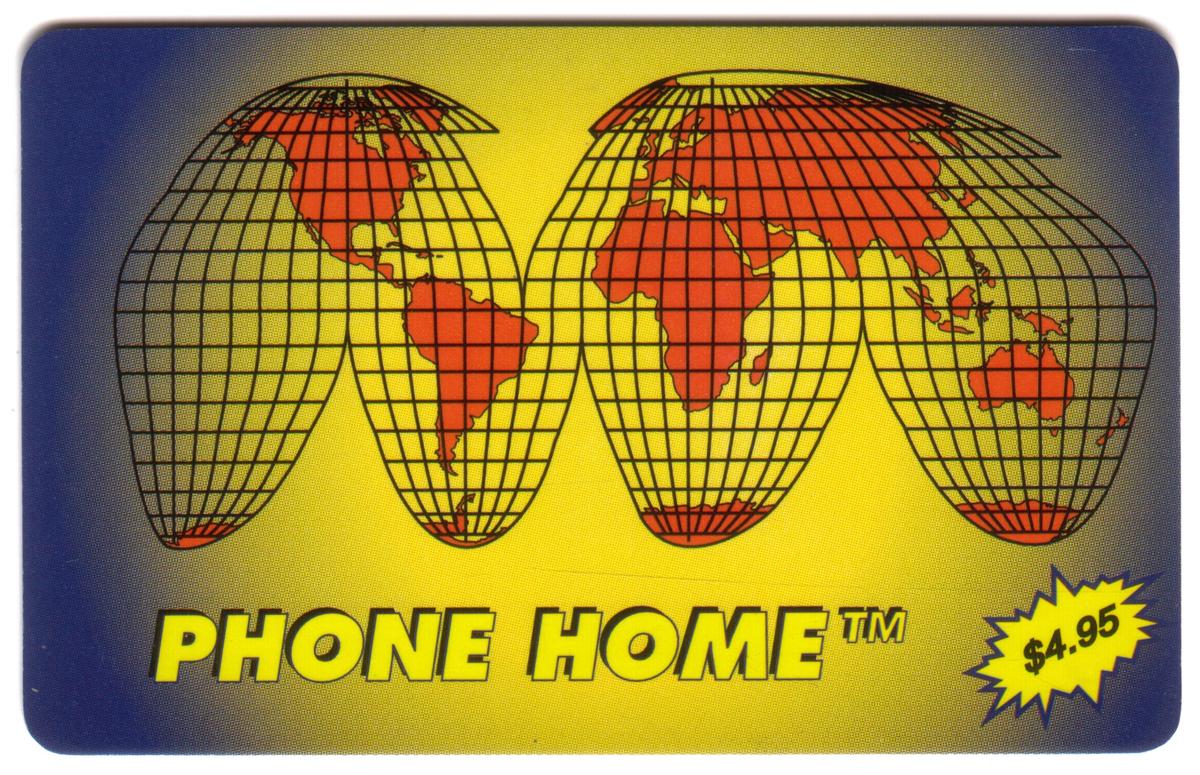 The card is clearly identified with the branding of PhoneCard Associates and includes the phrase "Phone Home," connecting its theme to communication. The combination of the graphic and text positions this as a collectible phone card with an emphasis on global connectivity.