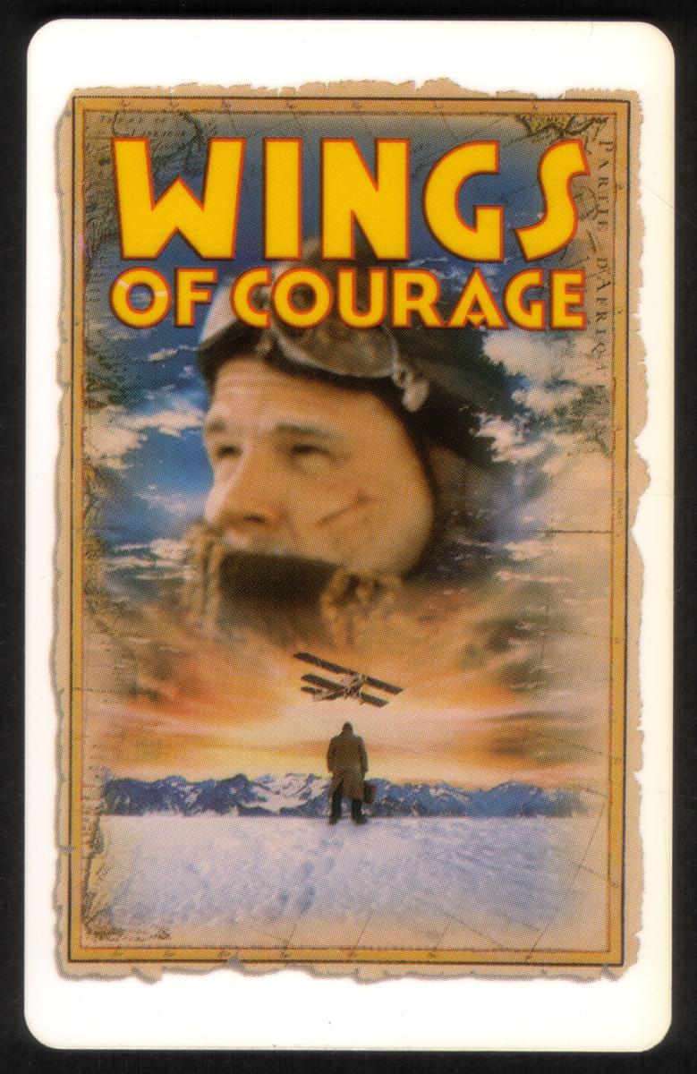 Overall, this collectible item celebrates the *Wings of Courage* motion picture through its aviation imagery and direct reference to the film title, linking it to entertainment, aircraft, flying, and telecard events within the mid-1990s timeframe.