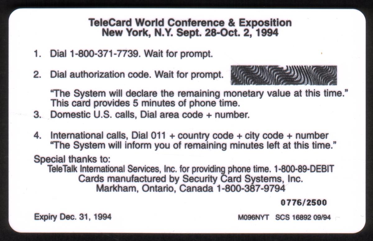 Since we have the world's largest inventory of USA phonecards for collectors, you will not necessarily receive the identical serial/batch/PIN number that we have scanned/pictured.