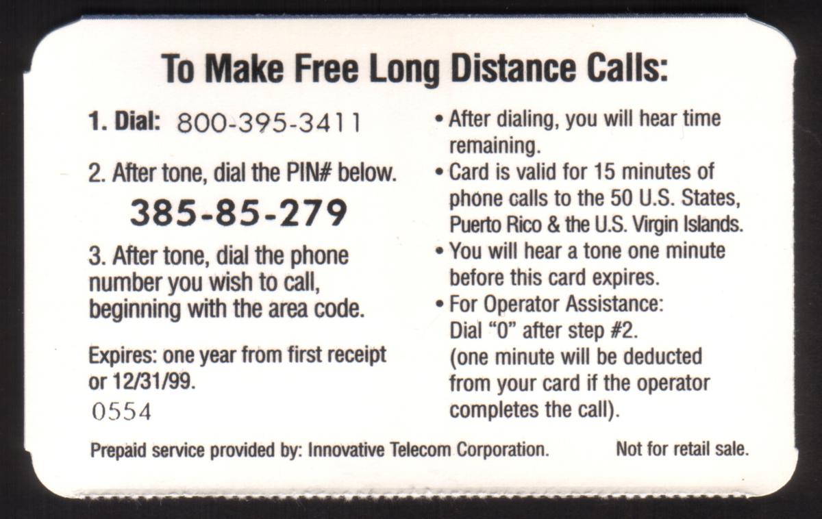 Since we have the world's largest inventory of USA phonecards for collectors, you will not necessarily receive the identical serial/batch/PIN number that we have scanned/pictured.