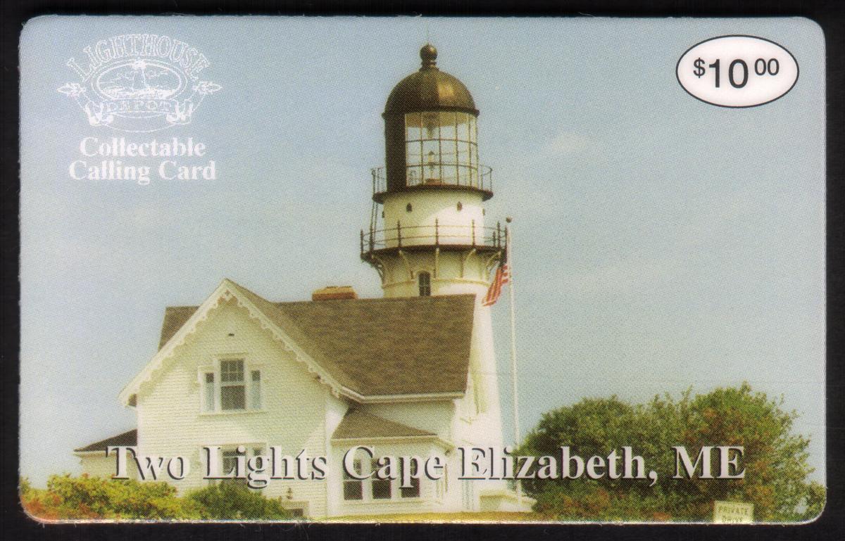 This complete set of nine collectible calling cards, part of the Lighthouse Depot Series, features nine iconic lighthouses from the United States, each displayed prominently on its respective card with a photographic image against a clear sky. Each card carries a face value of $10.00 and is labeled as a "Collectable Calling Card" with the Lighthouse Depot logo in silver print at the top left corner.