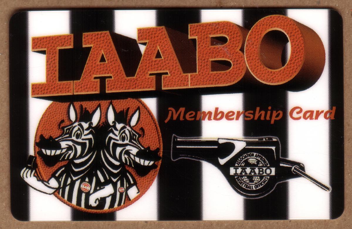 This card combines elements of wildlife—the zebra—with basketball officiating, making it a unique piece for collectors interested in sports memorabilia, particularly those focusing on basketball and related officials. The inclusion of the IAABO membership details confirms its connection to professional basketball refereeing organizations.