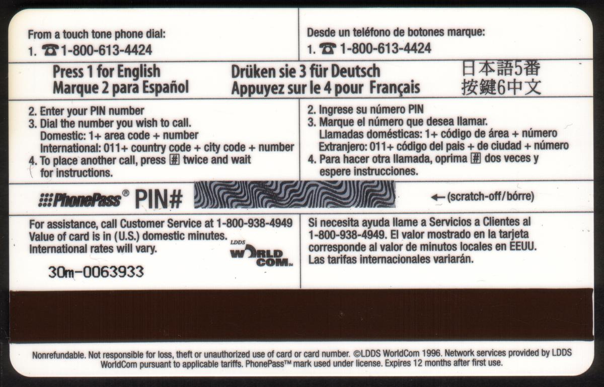 Since we have the world's largest inventory of USA phonecards for collectors, you will not necessarily receive the identical serial/batch/PIN number that we have scanned/pictured.