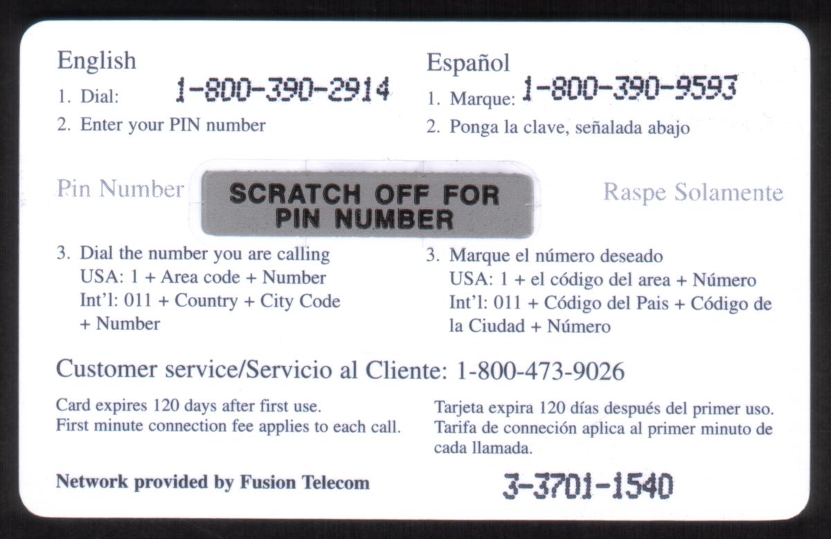 Since we have the world's largest inventory of USA phonecards for collectors, you will not necessarily receive the identical serial/batch/PIN number that we have scanned/pictured.