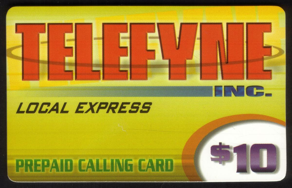Overall, the card communicates its purpose as a prepaid utility card for local telecommunication use, issued by Telefyne Inc. The design elements focus on clarity, value indication, and brand identification, making it a collectible item within the telecommunications card domain.