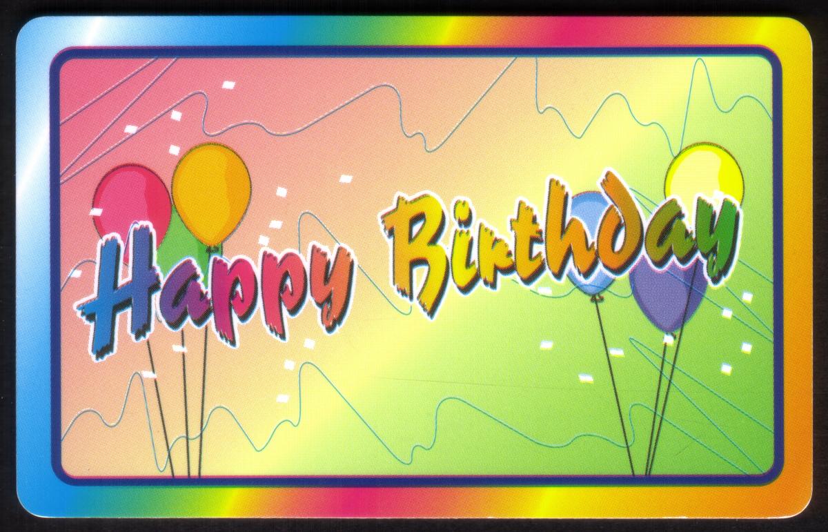 This phone card is a specimen, meaning it serves as a sample or example rather than for active use. The overall presentation is designed to convey warm greetings suitable for birthday celebrations.