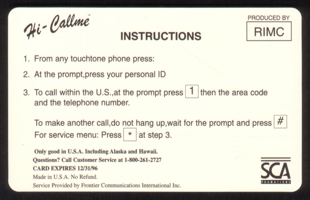 Since we have the world's largest inventory of USA phonecards for collectors, you will not necessarily receive the identical serial/batch/PIN number that we have scanned/pictured.