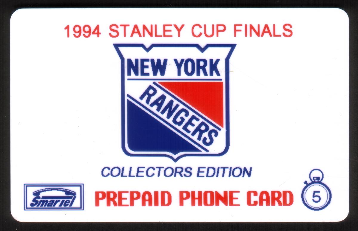 This collectible card highlights a significant moment in hockey history related to the 1994 Stanley Cup Playoffs and honors one of the NHL’s iconic teams. It was issued by SmarTel as a prepaid phone card designed for use while celebrating the New York Rangers’ championship year.