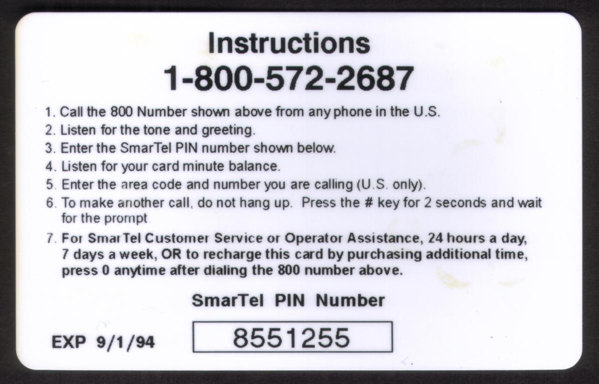 Since we have the world's largest inventory of USA phonecards for collectors, you will not necessarily receive the identical serial/batch/PIN number that we have scanned/pictured.