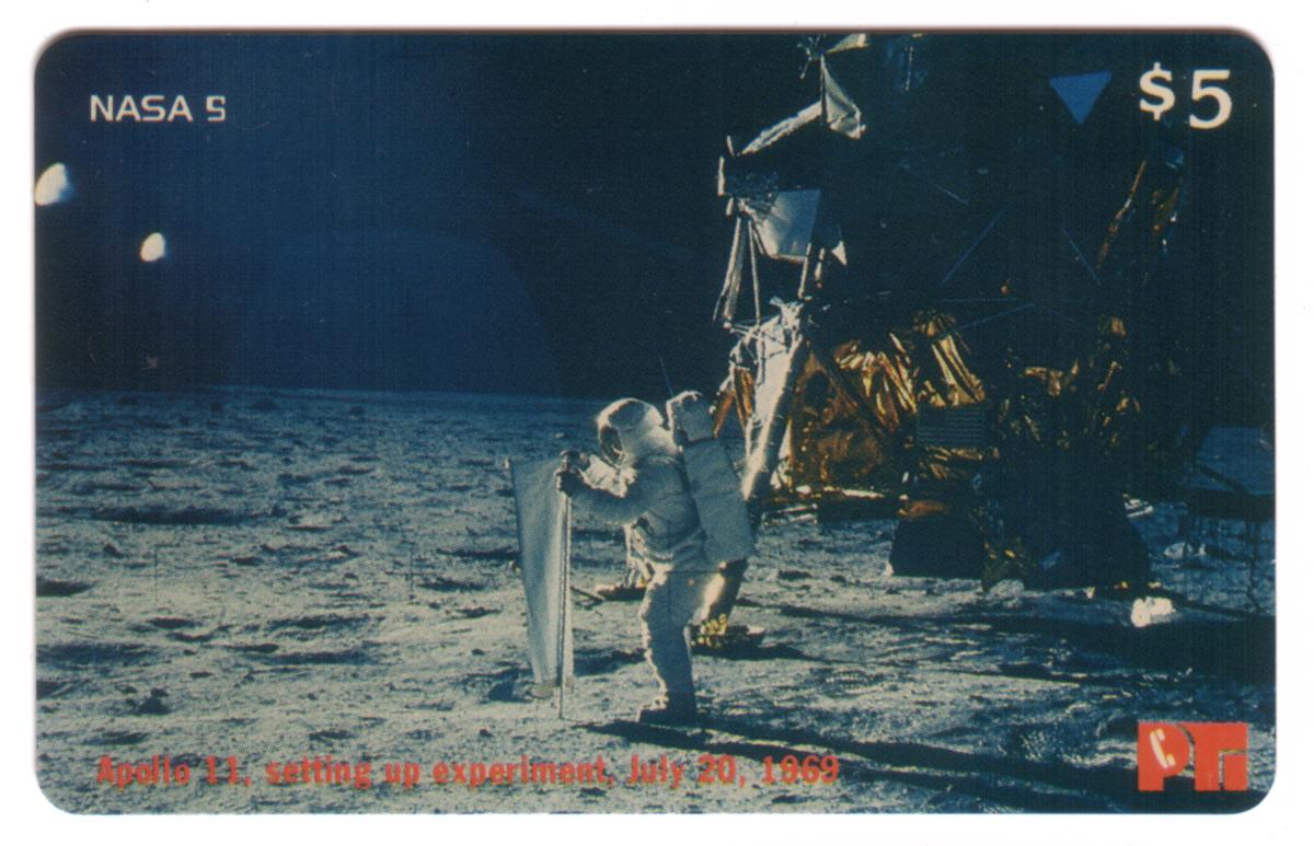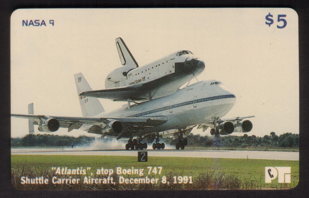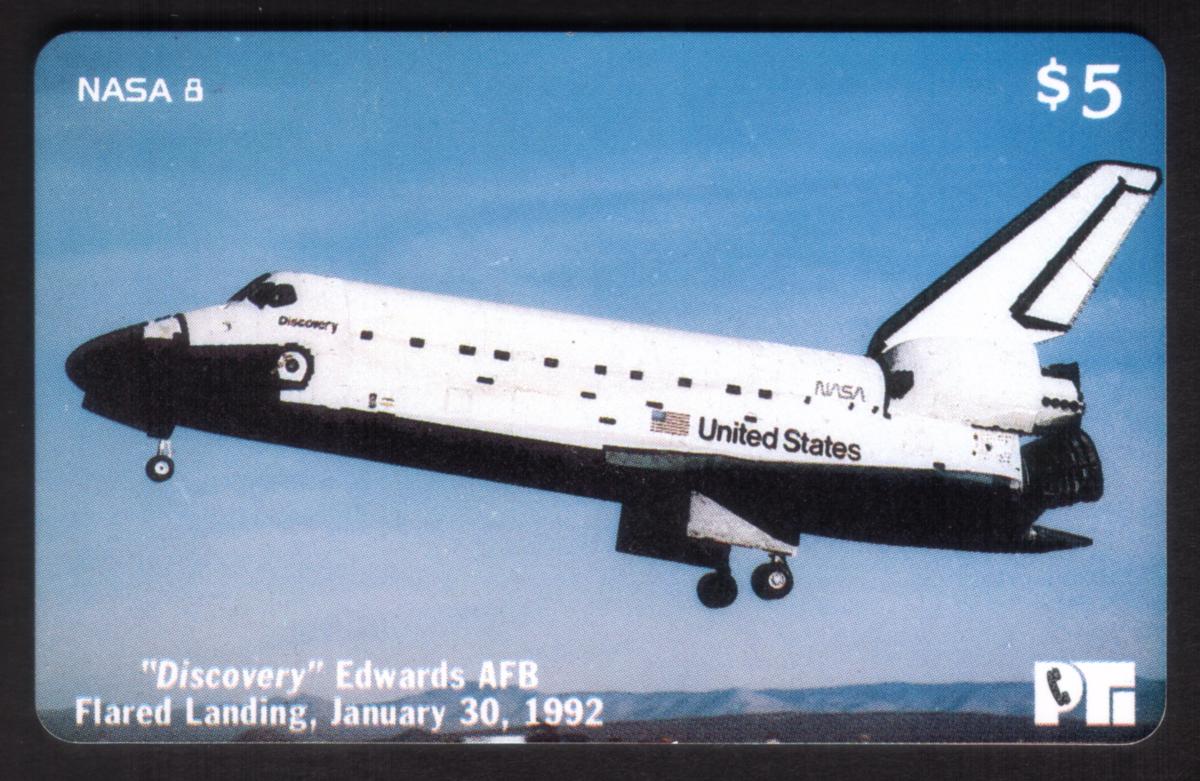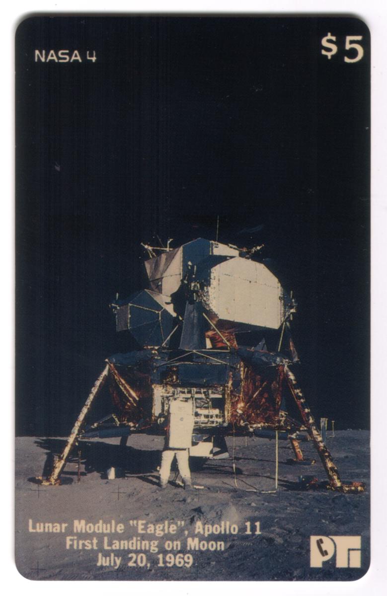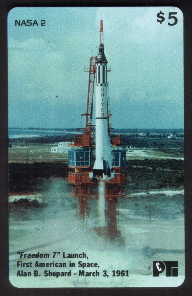 This set of 11 collectible prepaid phone cards features iconic NASA space exploration themes and photography. Each card displays a $5 value and includes a distinct image with related information in red, black, or blue text. The cards highlight key moments and equipment from NASA’s space program, emphasizing spacecraft, launches, landings, and important historical events at the Kennedy Space Center and beyond.