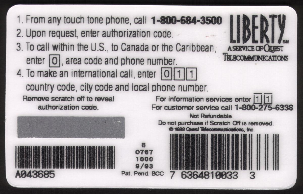 Since we have the world's largest inventory of USA phonecards for collectors, you will not necessarily receive the identical serial/batch/PIN number that we have scanned/pictured.