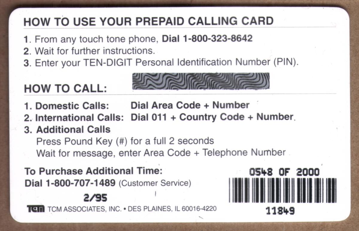 Since we have the world's largest inventory of USA phonecards for collectors, you will not necessarily receive the identical serial/batch/PIN number that we have scanned/pictured.