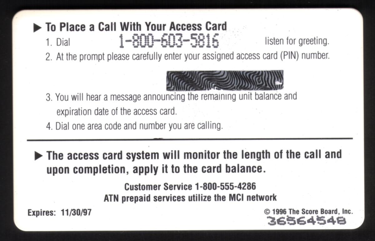 Since we have the world's largest inventory of USA phonecards for collectors, you will not necessarily receive the identical serial/batch/PIN number that we have scanned/pictured.