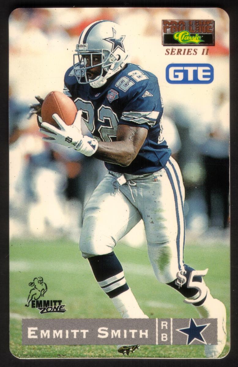 These collectible phone cards are part of the Pro Line Classic Series II set, each with a $5 denomination and featuring NFL football players sponsored by GTE.