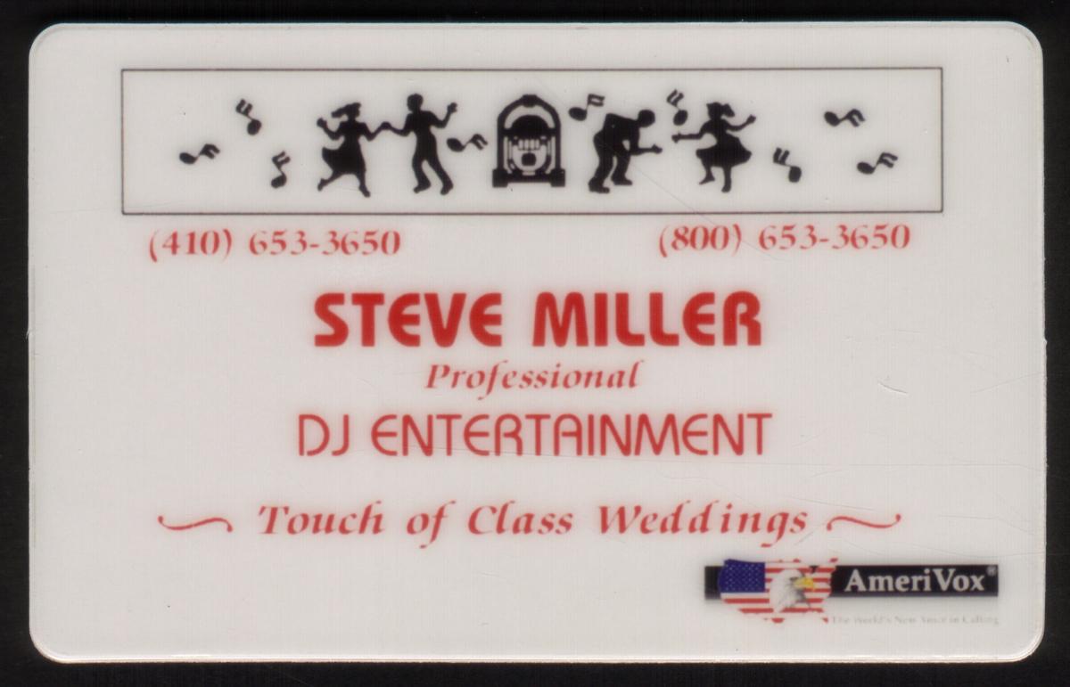 Keywords: Promotionals, Music, musicians, bands, music groups, music artists, entertainment, celebrities, famous people, stars, musical notes, dancing, guitar, jukebox, blank reverse, touch of class weddings, AmeriVox