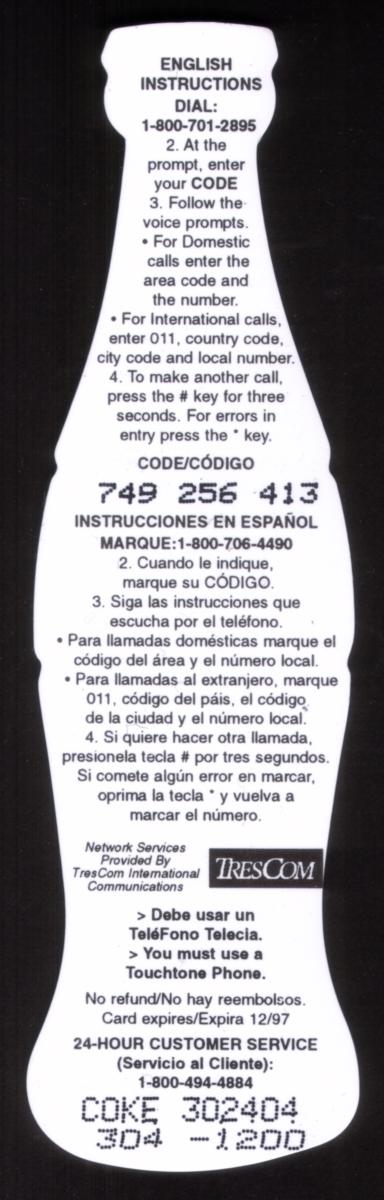 The entire shape of the card mimics the silhouette of the classic Coca-Cola bottle, making it a distinctive and visually appealing collectible for fans of Coca-Cola memorabilia and carnival events.
