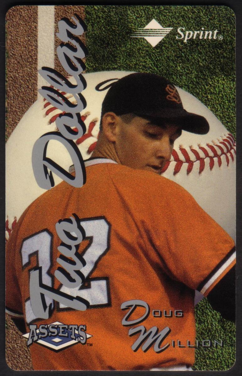 These collectible cards are part of the Assets Series #2 (1995) Complete Set of 24 by The Score Board Inc., featuring prominent athletes from baseball, football, basketball, hockey, and auto racing. Each card prominently displays the denomination "Two Dollar" in large script on the left side, with the Sprint logo near the top. The Assets logo is situated toward the bottom left.