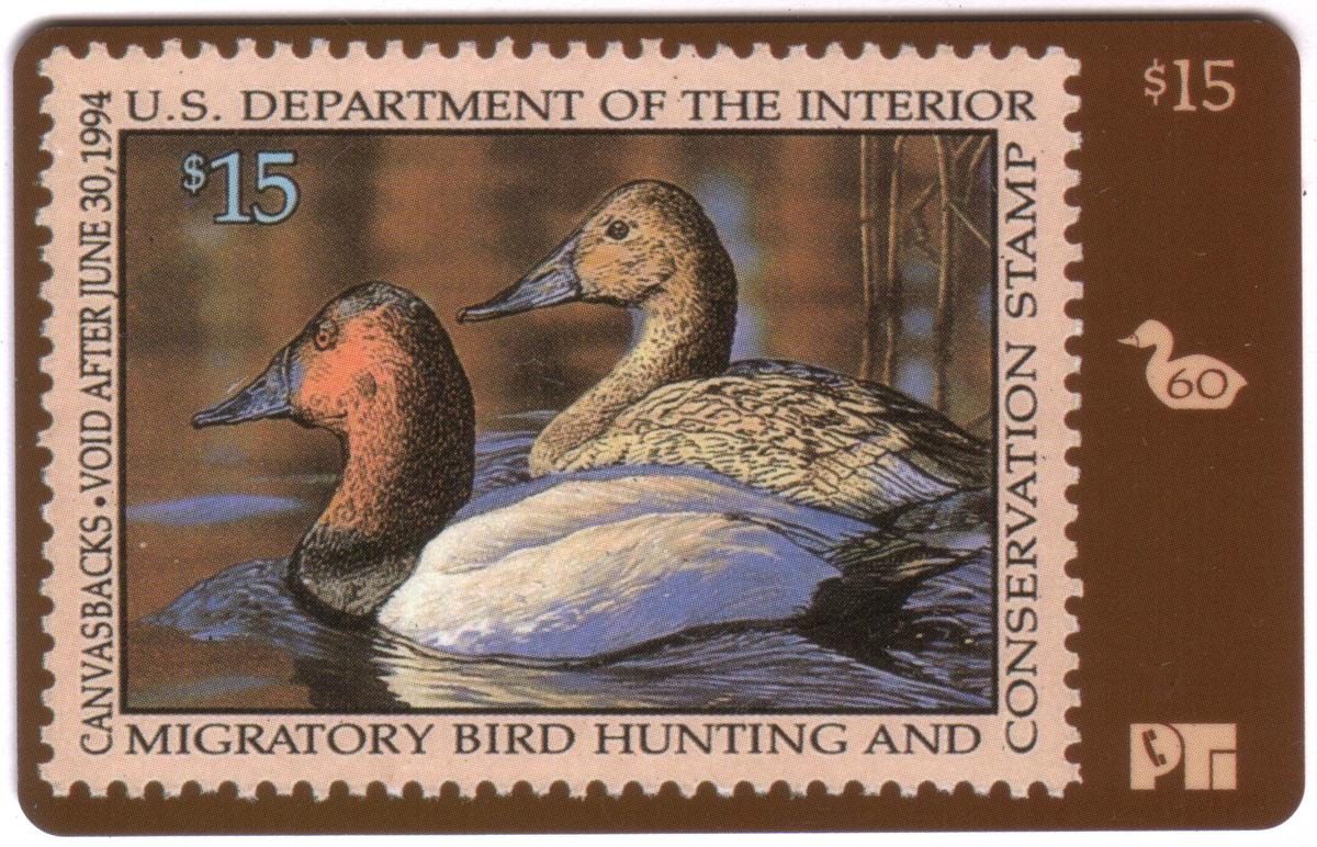 Duck Hunting Permit Stamp Card #60 'Void After 1994' Canvasbacks