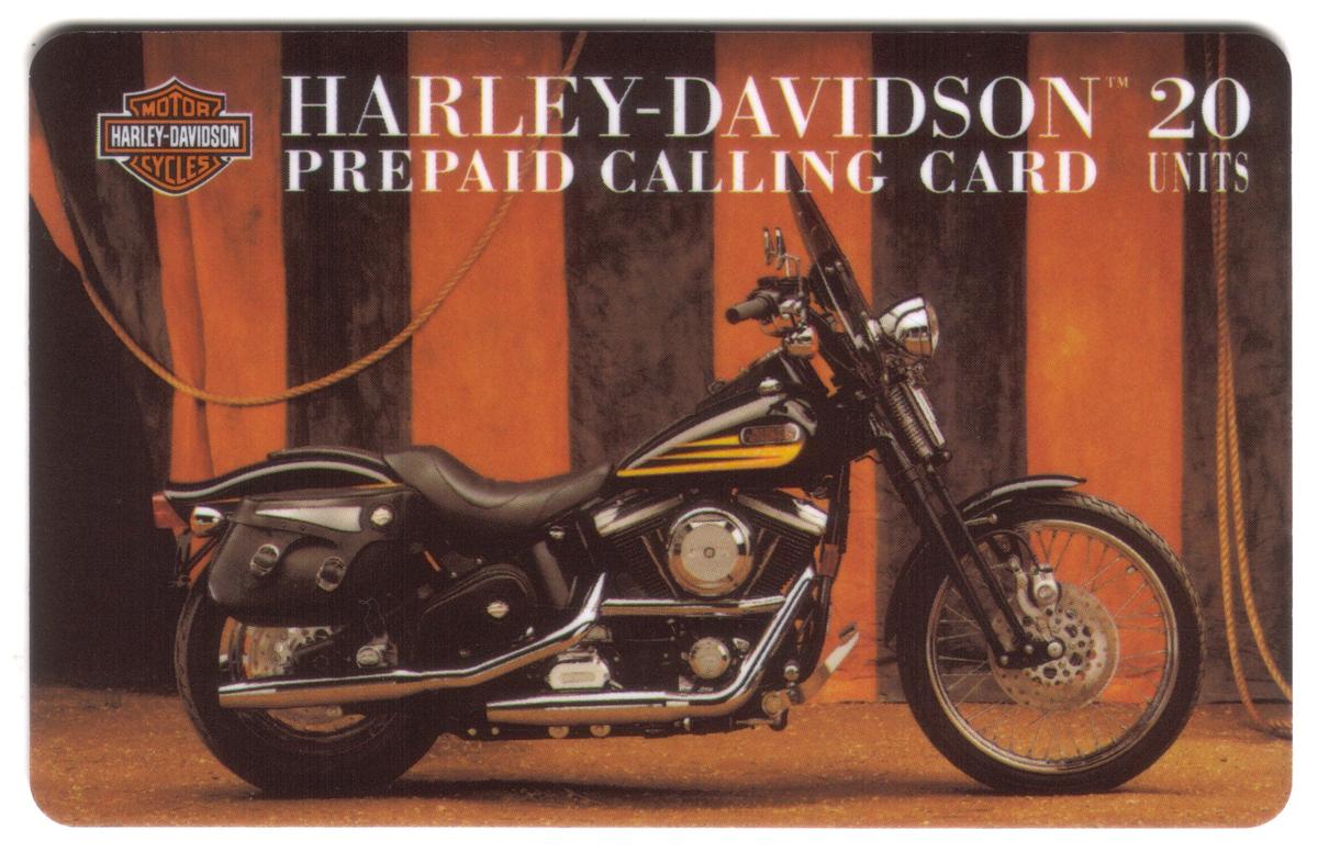 This collectible phone card features a detailed image of a Harley-Davidson FXSTSB Bad Boy motorcycle. The motorcycle is depicted in profile, showcasing its distinctive design with a black finish and chrome accents. The frame and wheels are visible, highlighting the classic styling of the FXSTSB model. The Harley-Davidson logo can be seen clearly on the motorcycle’s fuel tank.