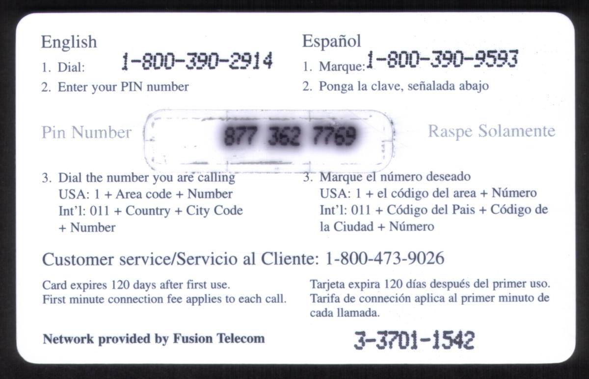 Since we have the world's largest inventory of USA phonecards for collectors, you will not necessarily receive the identical serial/batch/PIN number that we have scanned/pictured.