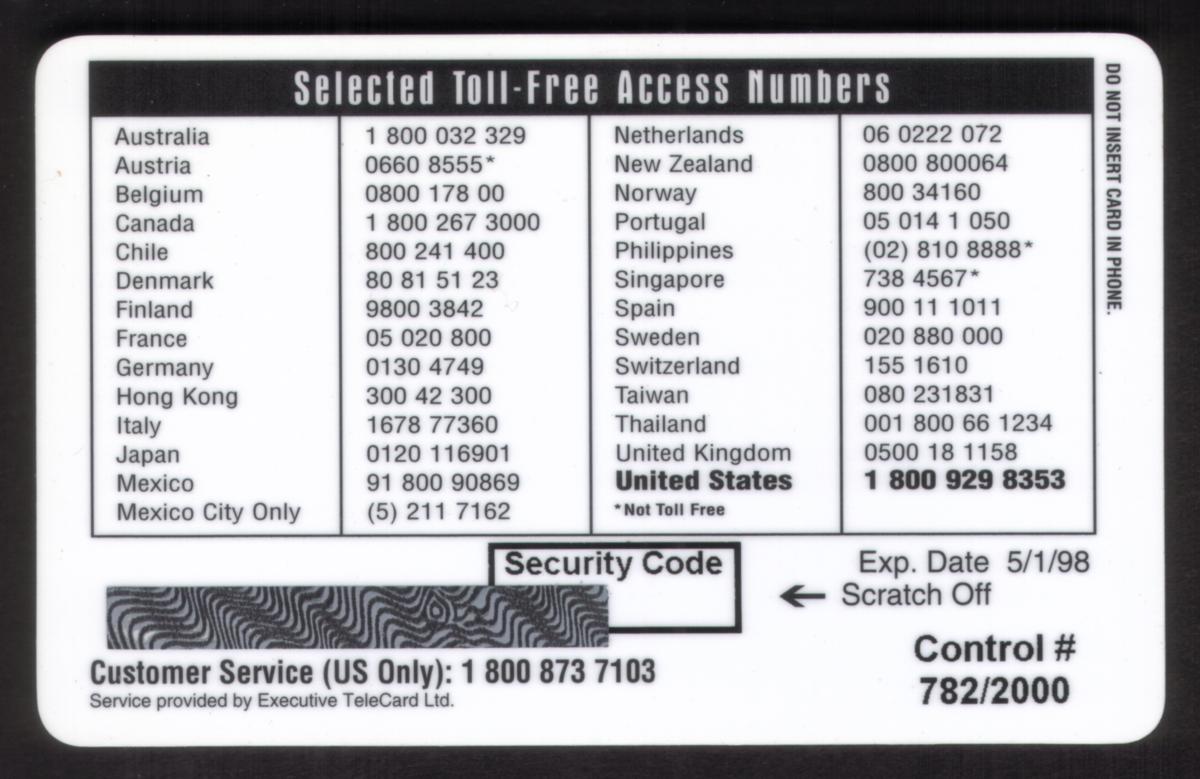 Since we have the world's largest inventory of USA phonecards for collectors, you will not necessarily receive the identical serial/batch/PIN number that we have scanned/pictured.