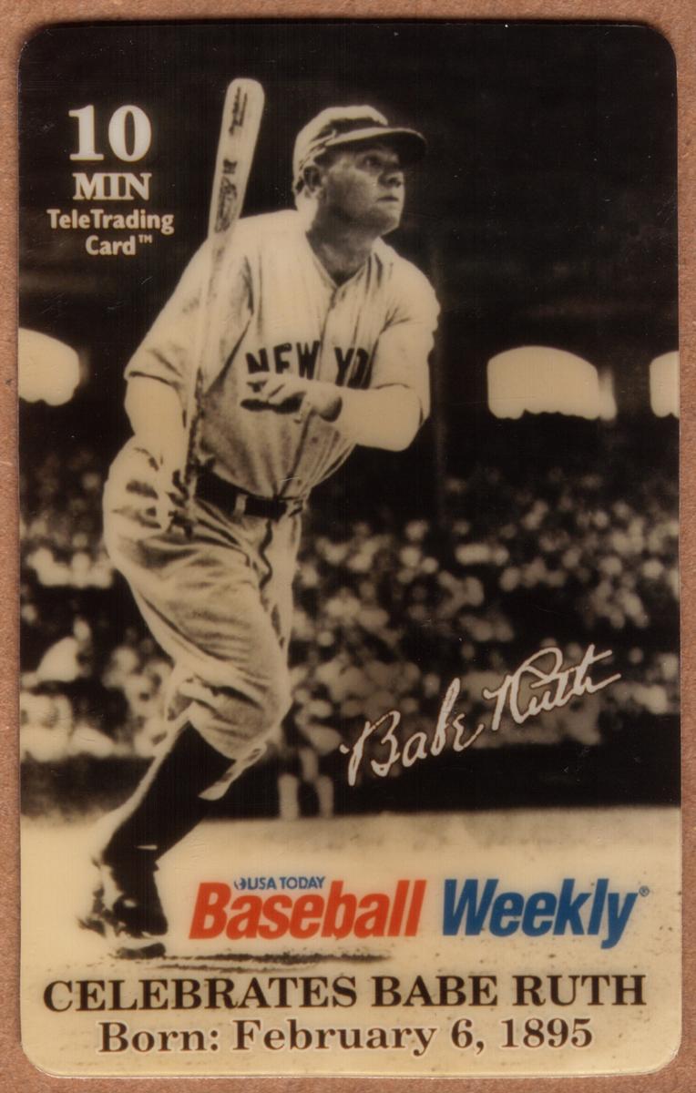 The card indicates a 10-minute time value, and prominently displays the name "Babe Ruth" in a script-style font near the bottom right of the image. It is branded with "USA Today Baseball Weekly" and includes a commemorative text section stating "CELEBRATES BABE RUTH" alongside his birthdate, February 6, 1895.