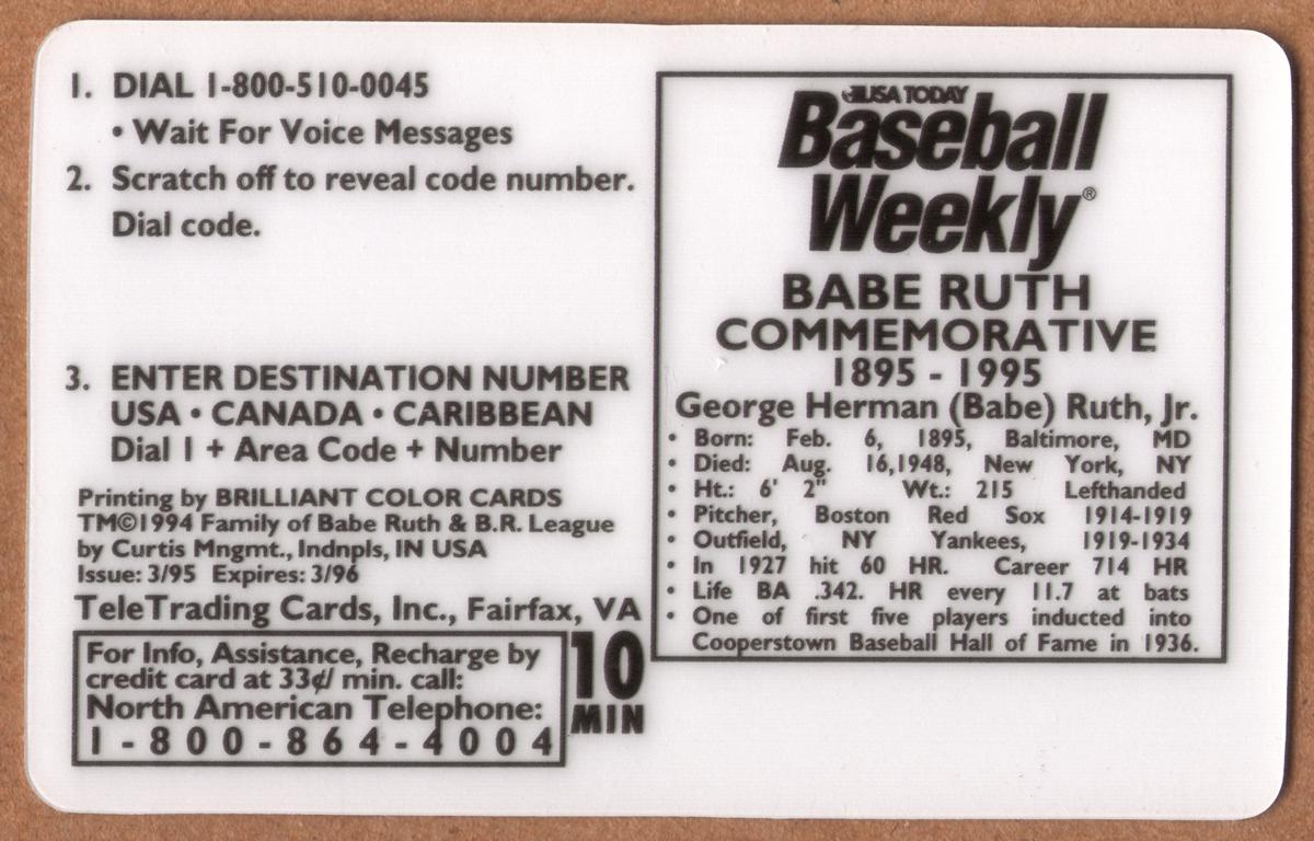 This card, issued by TeleTrading Cards Inc., is dated March 1996 and is part of a special edition celebrating Babe Ruth’s enduring legacy as one of the greatest baseball legends and sports celebrities. It reflects both sports history and media tribute, highlighting Babe Ruth as an iconic figure in baseball.