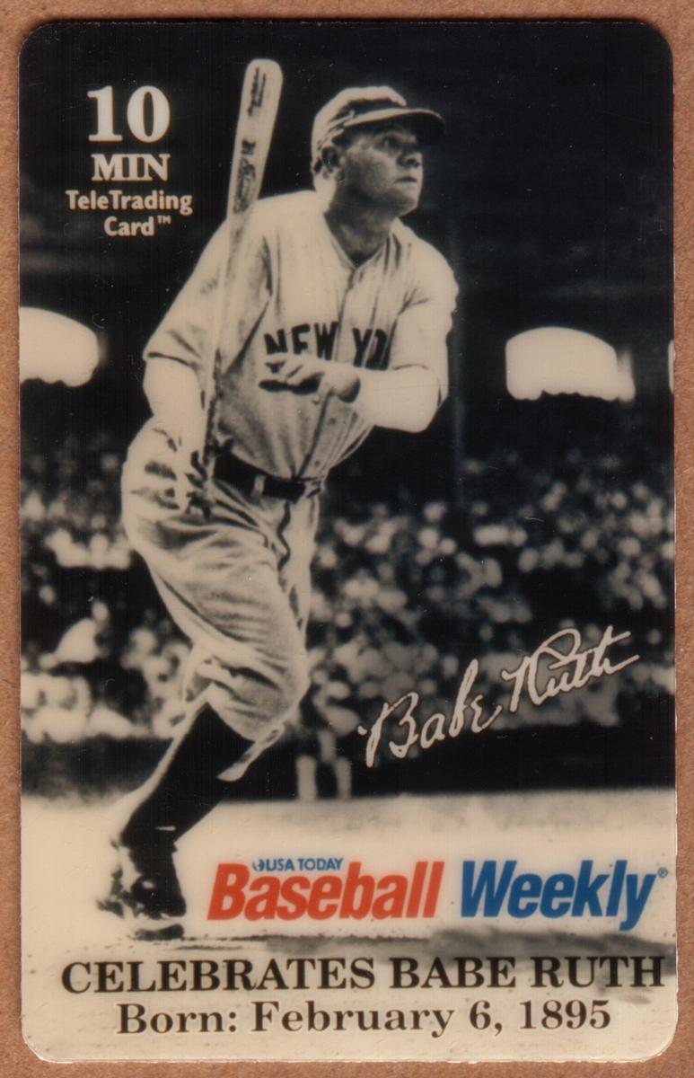The card has the title "Sports Legends" and prominently features the name Babe Ruth printed in bold. Additional text on the card includes "10m Babe Ruth," referring to the card’s value or series number, and the words "USA Today’s Baseball Weekly," connecting the card to this well-known sports publication. The card is produced by TeleTrading Cards Inc., as indicated by the text found on the card.