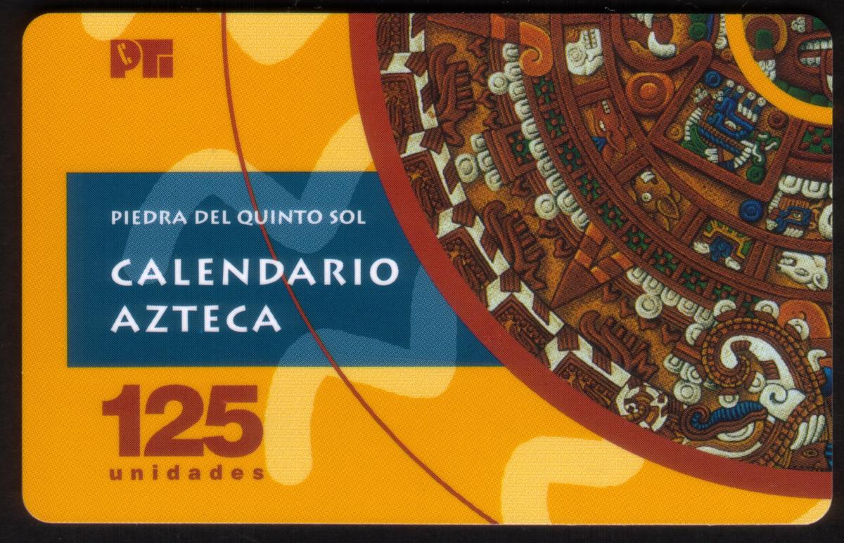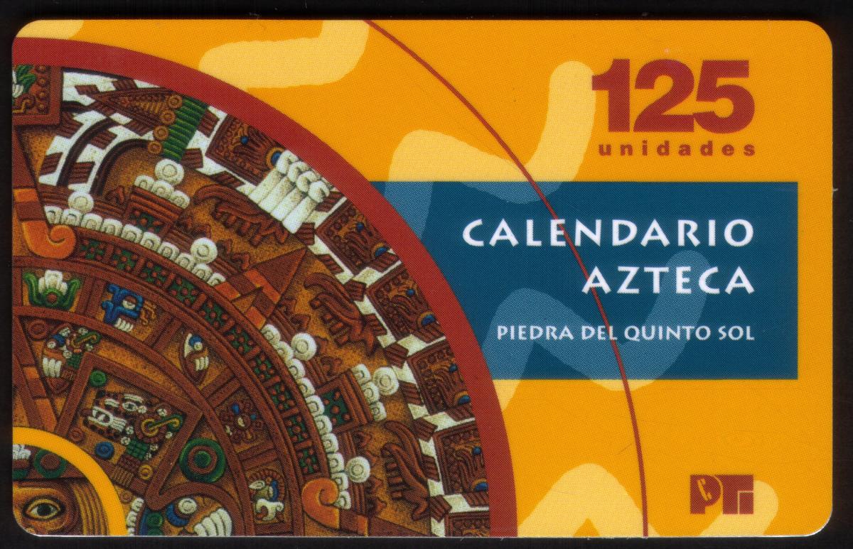 This set of four cards collectively showcases the Aztec calendar in its artistic complexity, reflecting the heritage and primitive arts of Mexico. The cards are designed for international prepaid telecom use, each with a value of 125 units, combining cultural artwork with functional telecommunication value.