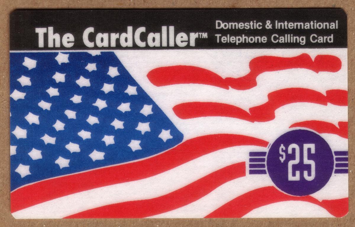 Appearing in the bottom right corner, the card indicates a value of $25, marking its denomination. The card bears the name CardCaller, Inc., confirming its issuer. The overall design emphasizes patriotism and Americana through the clear presentation of the United States flag, embodying national pride.