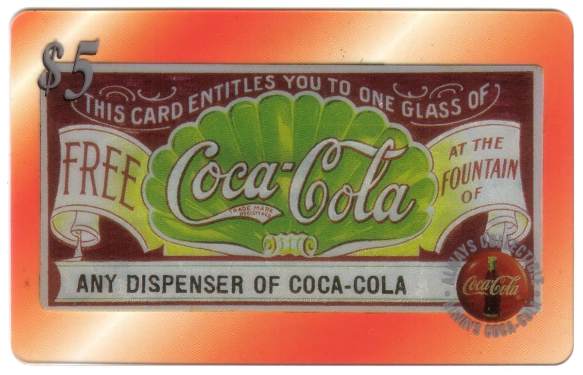 Issued in 1996, this card serves as both a collectible item and a coupon for redeeming free Coca-Cola at participating locations. The Score Board Inc. is credited as the issuer, connecting it to collectible memorabilia from that era.